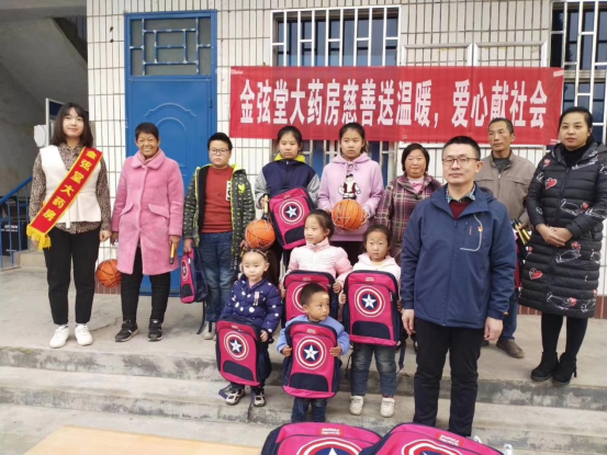 慈善送温暖,爱心献社会,关爱留守儿童,金弦堂大药房在行动.